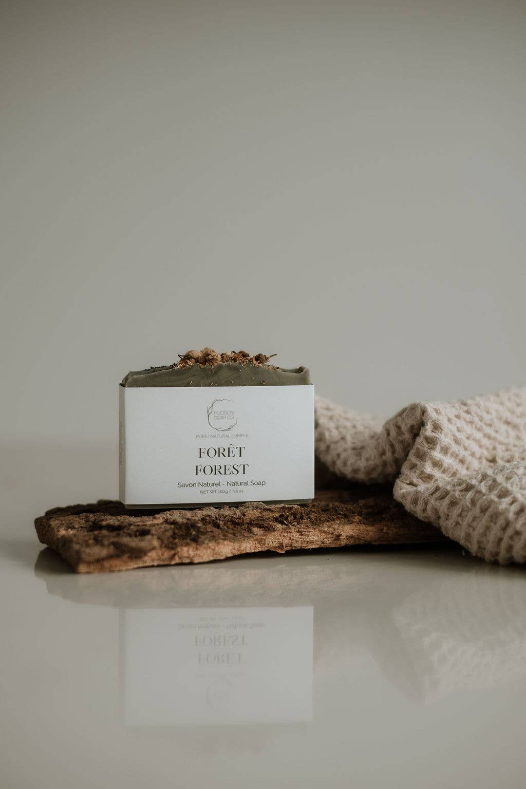 FOREST is a natural bar soap scented with the crisp, woodsy blend of Cedarwood, Fir Needle & Rosemary essential oils. The sharp, earthy aroma will stimulate your senses while helping detoxify your body. Coloured with vitamin and mineral-rich Alfalfa powder and Activated Charcoal powder for natural and beautiful hues. * Suitable for all skin types, face & body bar * For external use only, discontinue use if irritation occurs. * For a longer-lasting bar, allow soap to dry between uses on a tray or breathable dish. * Due to the nature of this handcrafted product, colour and size may vary slightly between each batch.