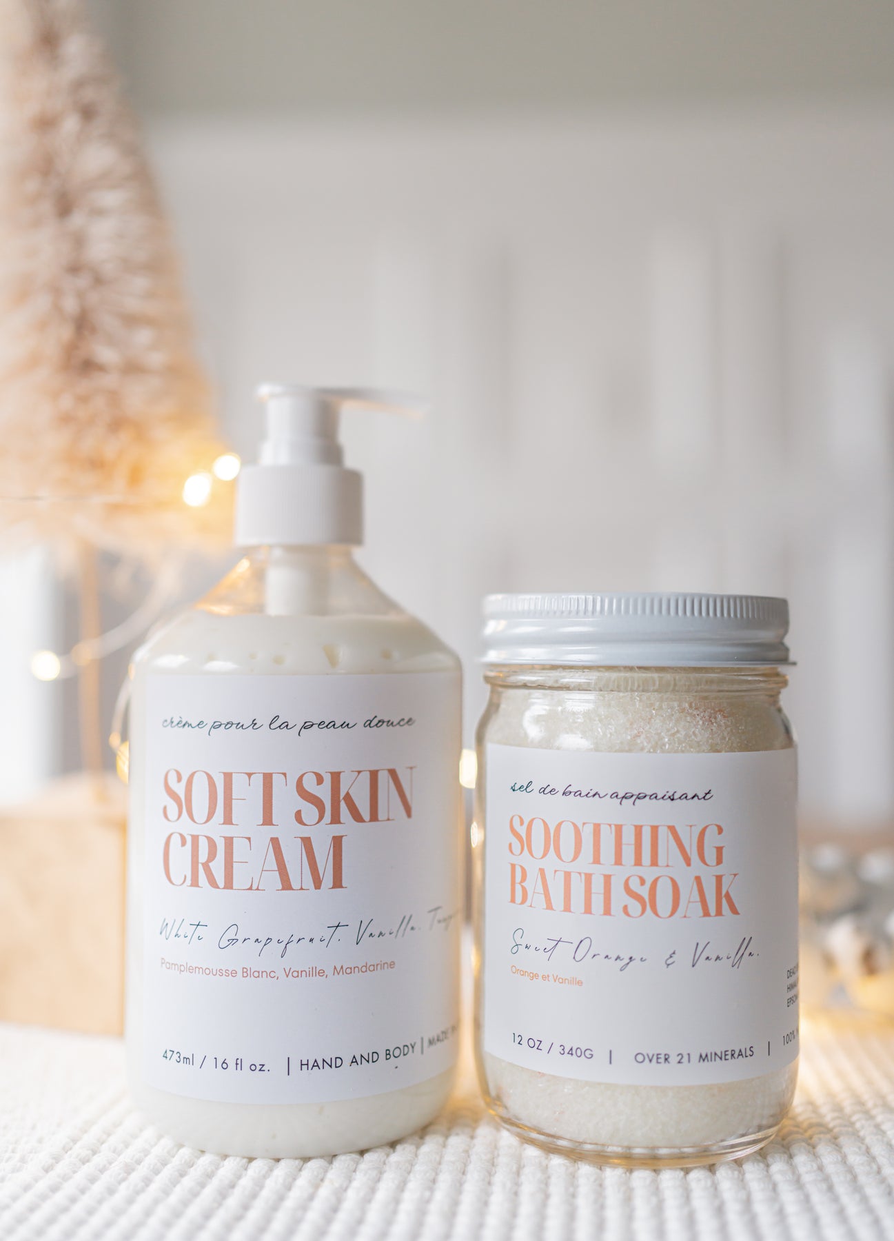 Give your skin — and your senses — the gentlest reset. This dreamy duo pairs our ultra-nourishing Soft Skin Cream with our mineral-rich, Soothing Bath Soak for a full-body moment of calm.